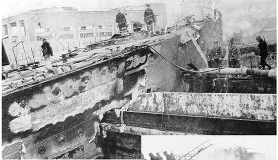 W rezultacie rankiem następnego dnia, już kilka godzin po zakończeniu strzelaniny, pokład roztrzaskanego okrętu zapełniały tłumy zwiedzających żołnierzy, przede wszystkim oficerów. Podziwiają ślady walki, widoczne na nadbudówkach i burtach. ■