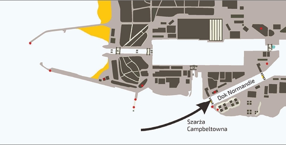 Ryc. 2. Schematyczny plan portu w Saint-Nazaire i suchego doku Normandie.