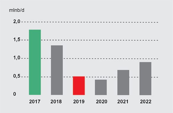 Ryc. 1. Eksport surowej ropy przez Iran w latach 2017–2022, w milionach baryłek dziennie. Źródło: FRED.